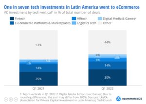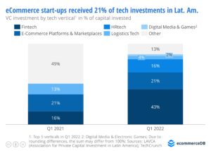 No es de extrañar que el comercio electrónico sea un sector atractivo para los capitalistas de riesgo en América Latina, ya que es un sector prometedor con un alto crecimiento: el crecimiento de los ingresos del comercio electrónico año tras año en América del Sur fue del 29 % en 2021, que fue 11 puntos porcentuales por encima del promedio mundial y seis puntos porcentuales por encima de América del Norte, según Statista Digital Market Outlook.