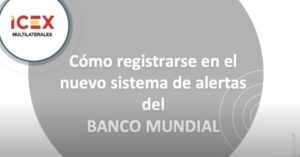 Vídeo tutorial sobre cómo registrarse en el sistema de alertas del BM El Banco Mundial ha creado un sistema de alertas para que, a través del correo electrónico, los usuarios registrados puedan recibir las notificaciones personalizadas en tiempo real sobre proyectos, regiones y temas de interés.Para facilitar a las empresas españolas la posibilidad de suscribirse a este nuevo sistema, el departamento de Multilaterales de la Oficina Económica y Comercial de España en Washington, ha elaborado un vídeo tutorial explicativo desgranando cuál es el proceso que debe llevarse a cabo para ese registro y recibir toda la actualidad sobre proyectos, documentos, datos, adquisiciones y otros temas.