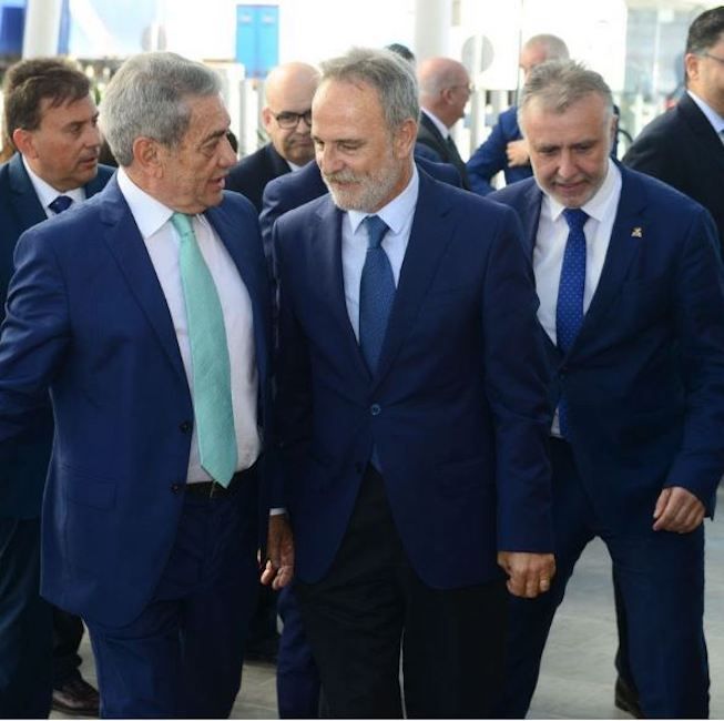 El presidente de Puertos del Estado, Salvador de la Encina, acompañado por el presidente de la Autoridad Portuaria de Las